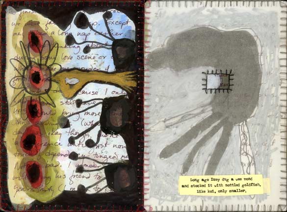 Long ago Impy dug a wee pond and stocked it with mottled goldfish. Like koi, only smaller.
