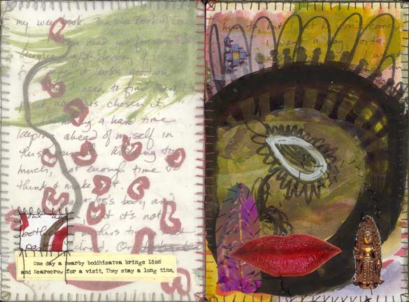 One day a nearby boddhisatva brings Lion and Scarecrow for a visit. They stay a long time.